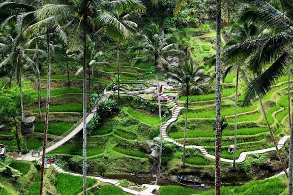 Hamparan sawah bertingkat yang ikonik dan menjadi spot foto favorit wisatawan mancanegara.